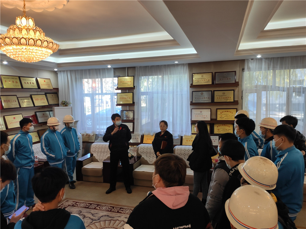 韩金广、刘佳为学生讲解企业发展史