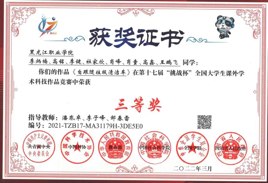 为践行我省创新驱动发展战略,永利官网通过自跟随垃圾清洁车等一批创新项目,着力培养科技创新人才和产业技能人才,并积极推进科技成果转化。目前自跟随垃圾清洁车已投入保利物业和新渤丰物业使用,解决环卫工作痛点,黑龙江日报集团龙头新闻对该项目应用情况进行专题报道,取得较好的社会效益。永利官网将进一步推进该项目的产业化发展,提升大学生科技企业孵化力度,促进我省经济发展和社会就业,助力科技强省建设。落实“民用、民生、民族”的专业办学理念。