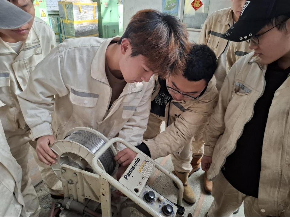 本次活动紧密对接企业前沿,学生亲临一线深度领悟氩弧焊技术的精髓与价值。在舒裕老师的悉心带领下,学生们深入探究了氩弧焊设备的工作原理,了解了氩弧焊焊机的送丝技巧和气瓶的安全使用规范,学生们的动手实践能力与安全意识都得到了进一步提升。学生们在参观舒裕老师的创新发展工作室时,还亲身体验并深刻领悟了“哈锅”深厚的文化底蕴与严密的制度体系,这一经历丰富了学生的知识视野,也大大提高了学生们的思想觉悟。