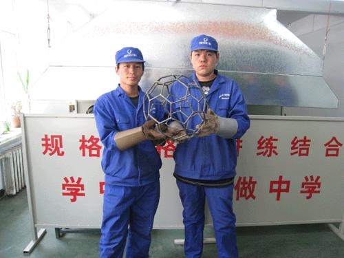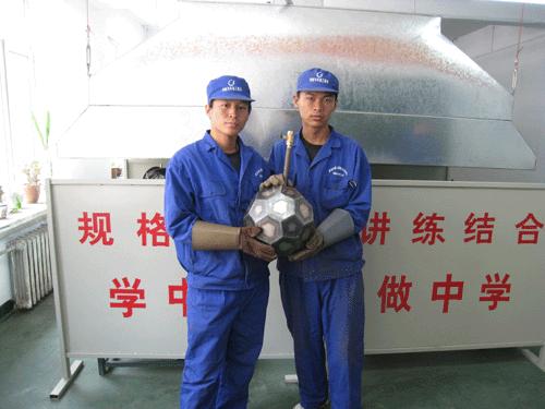 2009年3月20日在热能系领导的大力支持下,焊接教研室杨淼森老师的组织策划下,08级焊接学习小组正式成立了,现共组建两个小组,I组成员:于兴亚,毕成龙,韩广利,II组成员:田秋成,刘立臣。学习小组成员利用课余时间讨论、设计焊接工艺品。1组设计铁足球,II组设计载物小车,经过两周的时间小组成员们在焊接实训室刘长江,孙明杰,王建国,李方军老师的鼓励与指导之下成功完成各项工艺品,并取得了各位老师的好评,小组的成立让我们重新认识了焊接专业,让我们所学的理论知识与实践得到了结合,小组成员们利用业余时间主动去买材料、搞调研,进行方案论证,自行计算、设计图样,自行焊接组对,使焊接与艺术紧密的结合起来,使同学们得到了真正的工作任务训练,收效很大。同学们说焊接工艺品设计将会继续进行下去,并且会越做越好,对此小组成员们信心十足,绝不辜负系里对我们的厚望。