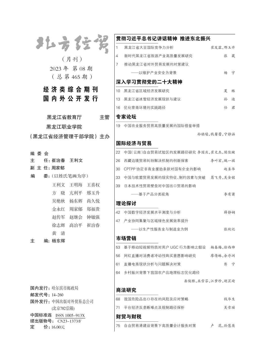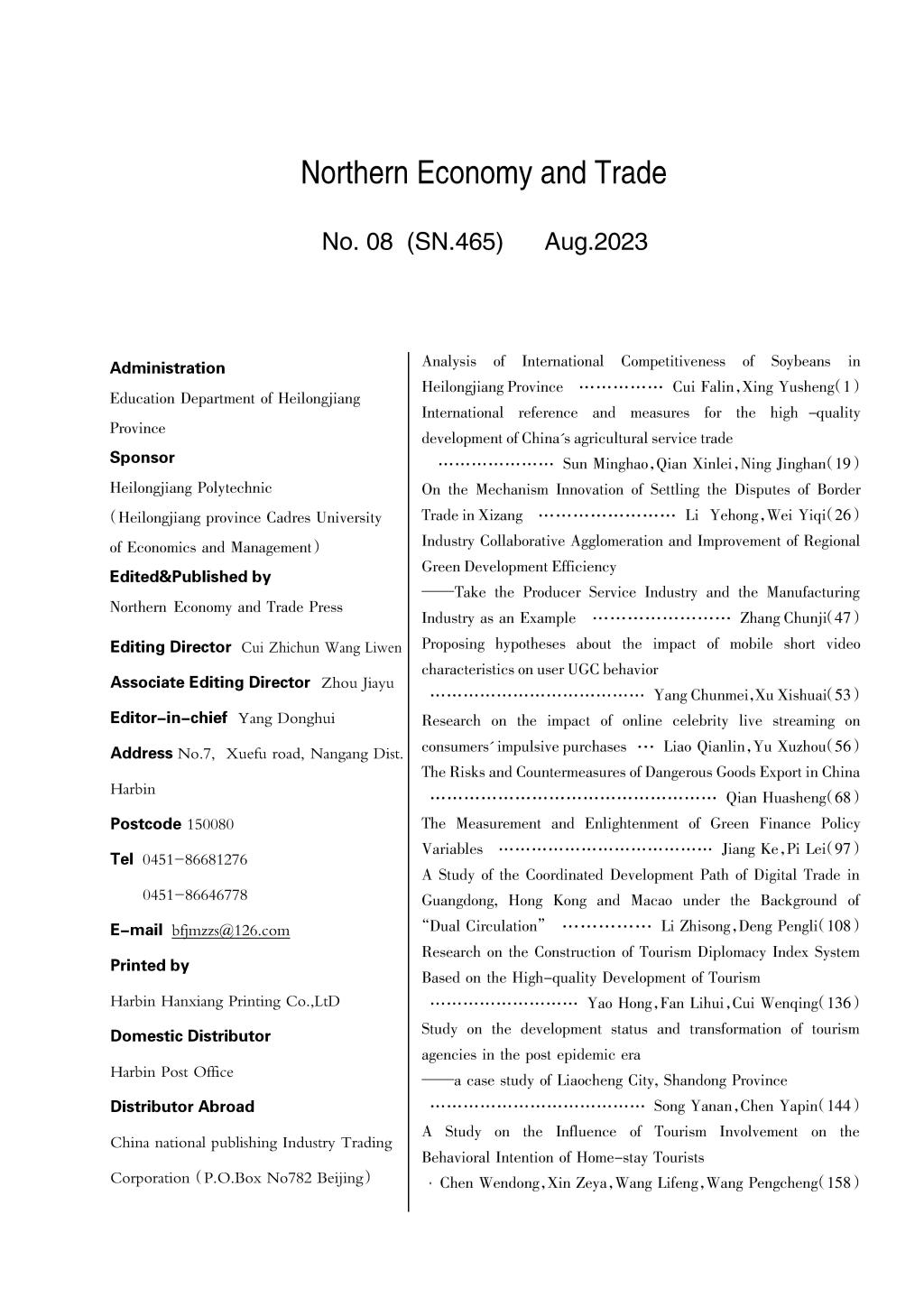 版权所有:北方经贸杂志社 地址:黑龙江省哈尔滨市南岗区学府路5号 邮编150080 电话:0451-86681276 86646778 邮箱:bfjmzzs@126.com