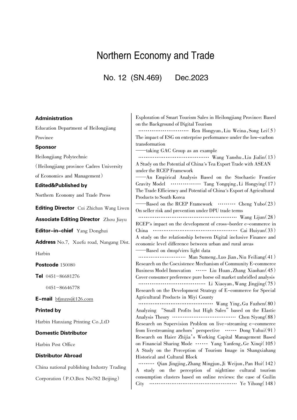 版权所有:北方经贸杂志社 地址:黑龙江省哈尔滨市南岗区学府路5号 邮编150080 电话:0451-86681276 86646778 邮箱:bfjmzzs@126.com