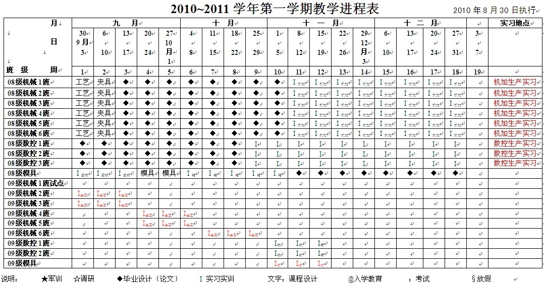 2010-2011学年第一学期教学进程表