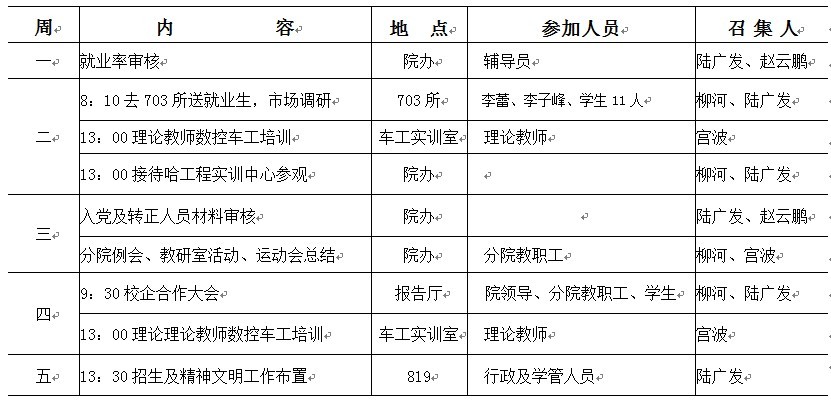 机械工程学院第十三周工作安排表