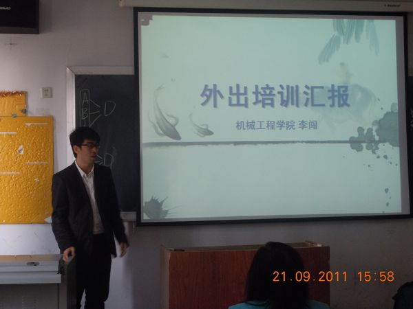 众所周知,提高教学质量,教师是关键。永利官网十分重视师资队伍的建设,继“三个一百”工程之后,永利官网于今年继续推进实行了“四个一百”工程,在2010~2011学年第二学期期间,我分院共派出19人次分赴德国、香港、新加坡、陕西、北京、内蒙、常州等地学习培训,被派出学习的教师都十分珍惜宝贵的学习机会,努力学习,取得了优异的成绩,学习归来后,及时总结学习成果,结合自己的工作实际,把学到的知识经验应用于教学科研工作。为了使外出学习培训教师的学习成果能让全分院教师受益,派出一人,惠及全分院,机械工程分院于9月21日举办了赴外地学习培训人员汇报交流会,会议由机械分院副院长宫波主持,教务处范海波副处长、徐英科长参加了会议,外出学习的10位同志在会上做了专题汇报。
