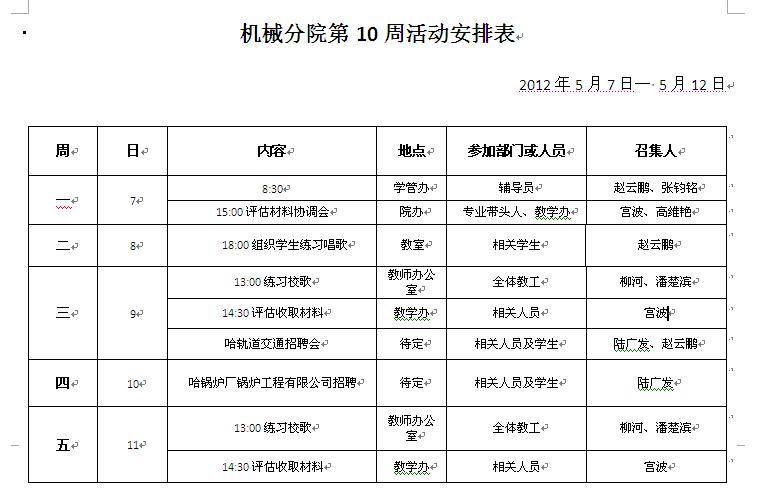 机械分院第十周重点工作推进表