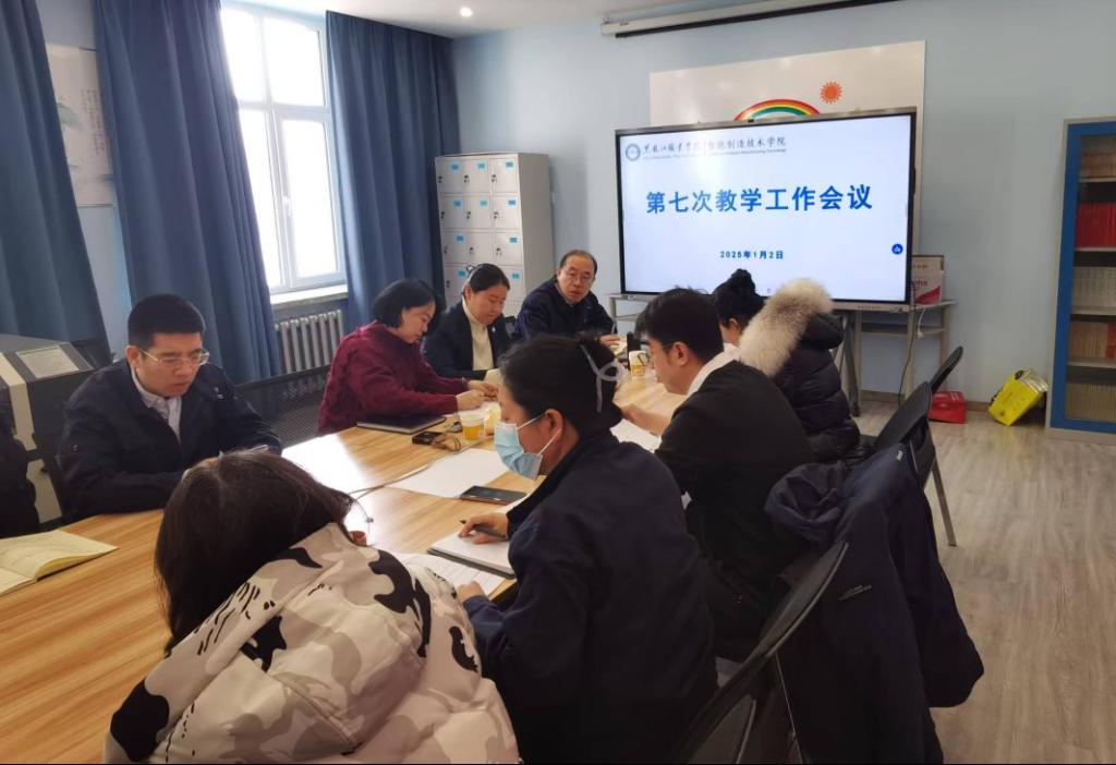 2025年1月2日,智能制造技术学院召开第七次教学工作会议,院长李子峰,副院长于雪梅、鲍敏,各教研室主任、所长、专业负责人参会。