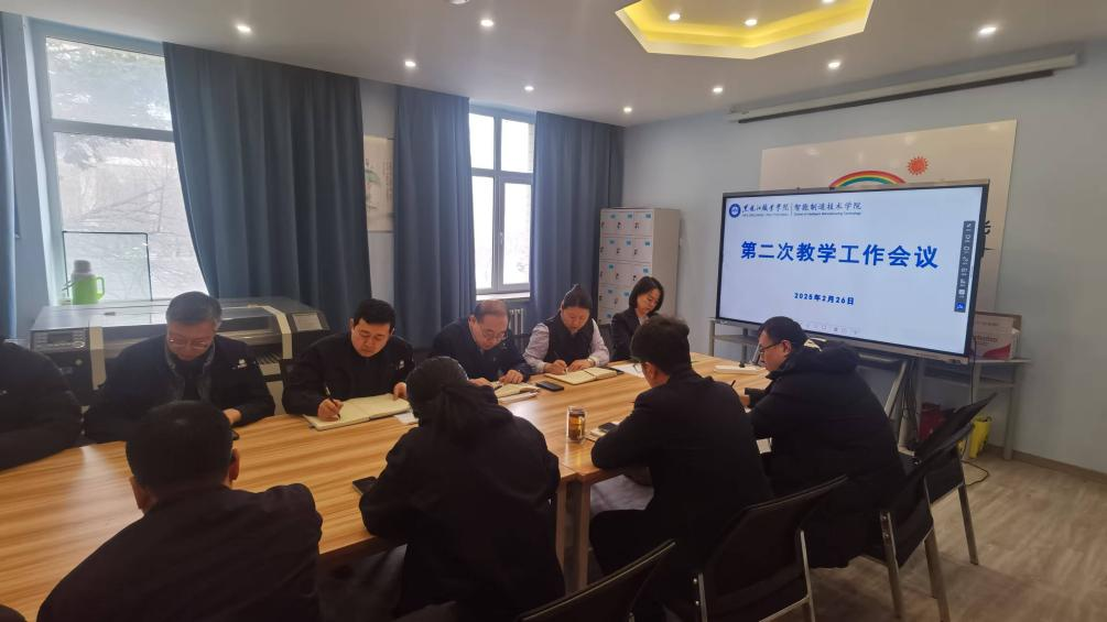 2025年2月26日,智能制造技术学院召开第二次教学工作会议,院长李子峰,党总支副书记李焕然、副院长于雪梅、鲍敏,综合办、教学办主任,各教研室主任参会。