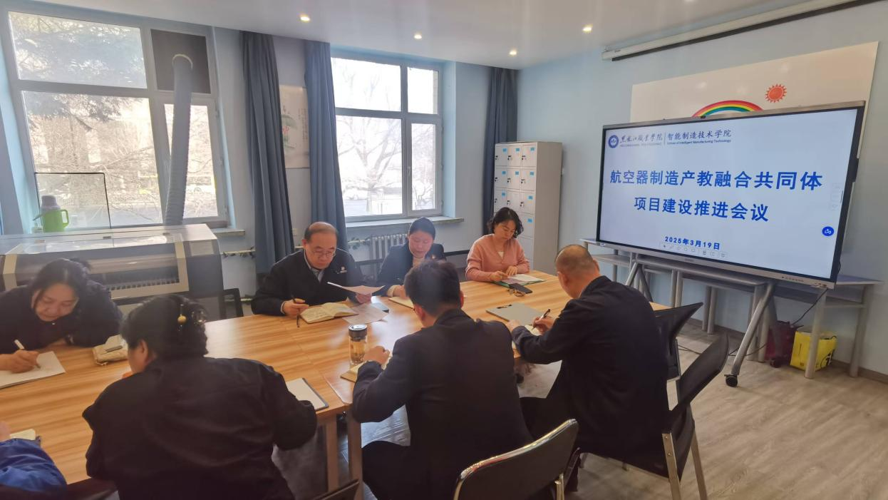 2025年3月19日,智能制造技术学院召开航空器制造产教融合共同体项目建设推进会议。院长李子峰,副院长于雪梅、鲍敏,各专业主任及骨干教师参会。