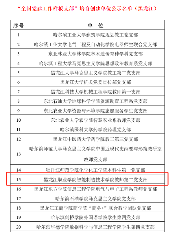 3月18日,教育部思想政治工作司公布了第四批新时代高校党建示范创建和质量创优“全国党建样板支部”名单。永利官网智能制造技术学院教师第二党支部获批“全国党建样板支部”。