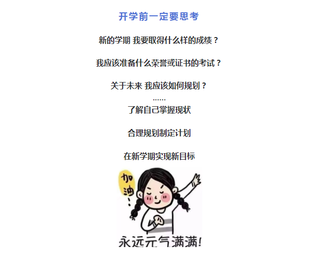 开学了,愿广大学子要回昔日的用心,夺回贪睡的宽心,重回新学期的雄心!