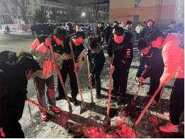 2023年3月15日受冷空气影响,哈尔滨出现降温、降雪天气,校园在一天之内银装素裹,道路被积雪覆盖。为保障同学们的通行安全和便利,确保环境整洁,智能制造技术学院组织2022级开展扫雪除冰行动。2022级辅导员们组织同学们迅速投入工作,扫雪除冰工作快速、高效地推进。大家手握铁锹、扫把将道路中央的积雪转移到两侧不妨碍通行的位置。