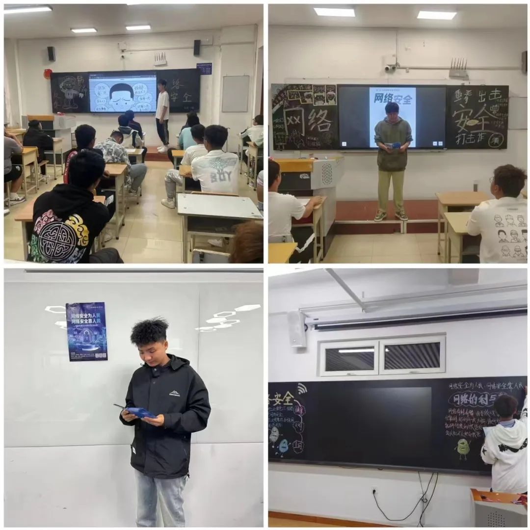 活动期间,各班级积极组织,广泛宣传和普及网络安全法律、法规、政策和相关知识,强化同学们对网络安全教育工作的参与意识和责任意识,倡导同学们依法文明上网,自觉抵制网络低俗之风,传播正能量,弘扬主旋律。