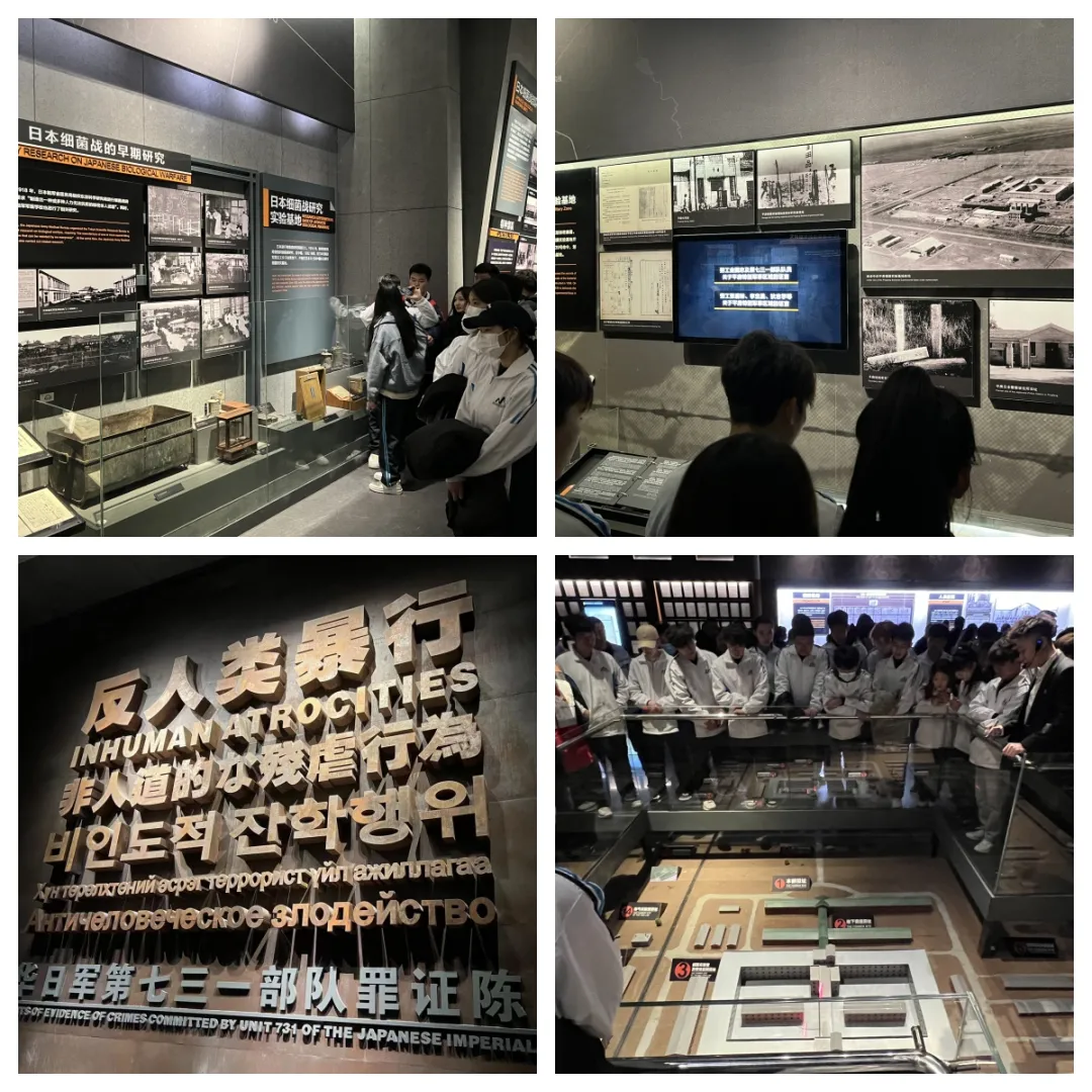 在讲解员的解说下,同学们通过展品、图片和文字对日军七三一部队的指挥体系和年代进程列表有了详细了解,侵华日军累累罪行,特别是进行活体实验。这些残酷的行径令大家感到痛心和愤怒,同学们不仅对那段黑暗的历史有了更直观的认识,也更加坚定了追求和平、发展科技的决心。他们纷纷表示,要以史为鉴,努力学习专业知识,也要肩负起社会责任,倡导和平、反对战争,为构建一个和谐社会而努力。