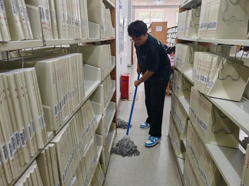 在志愿服务活动中,志愿者们热情高涨,手脚麻利,始终保持专注投入的状态,凭借高效执行力迅速推进工作。他们认真细致地擦拭场馆每一处角落,不仅将书架表面的灰尘清理得干干净净,还按照分类编码将图书整齐排列,让整个场馆面貌焕然一新 。