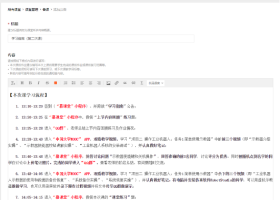 教师提前准备学习清单,慕课堂上传备课数据,QQ群上传学习资料,调整和发布中国大学MOOC资源,设计指南、优化流程、熟悉在线平台的各个功能,做到合理利用。授课前,教师下发学习指南,让大家知晓学习流程及学习重点。学生在慕课堂签到,进行上节内容回顾练习题的作答,老师将监控作答结果,在QQ群中针对大家的回顾情况及作业情况给与总结,引出新教学内容。