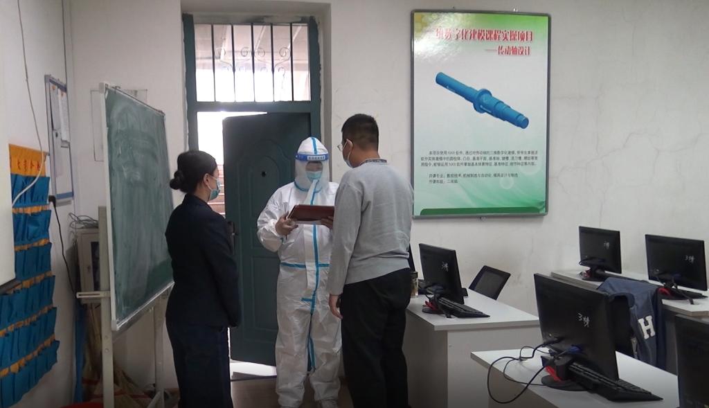 其次,布置教师线下复课任务和上课要求。教师上课启动线上线下同步教学各项准备;因疫情及其它原因暂未返校学生,通过课堂直播的形式进行线上学习;线上线下同步教学执行新的错峰上下课时间。