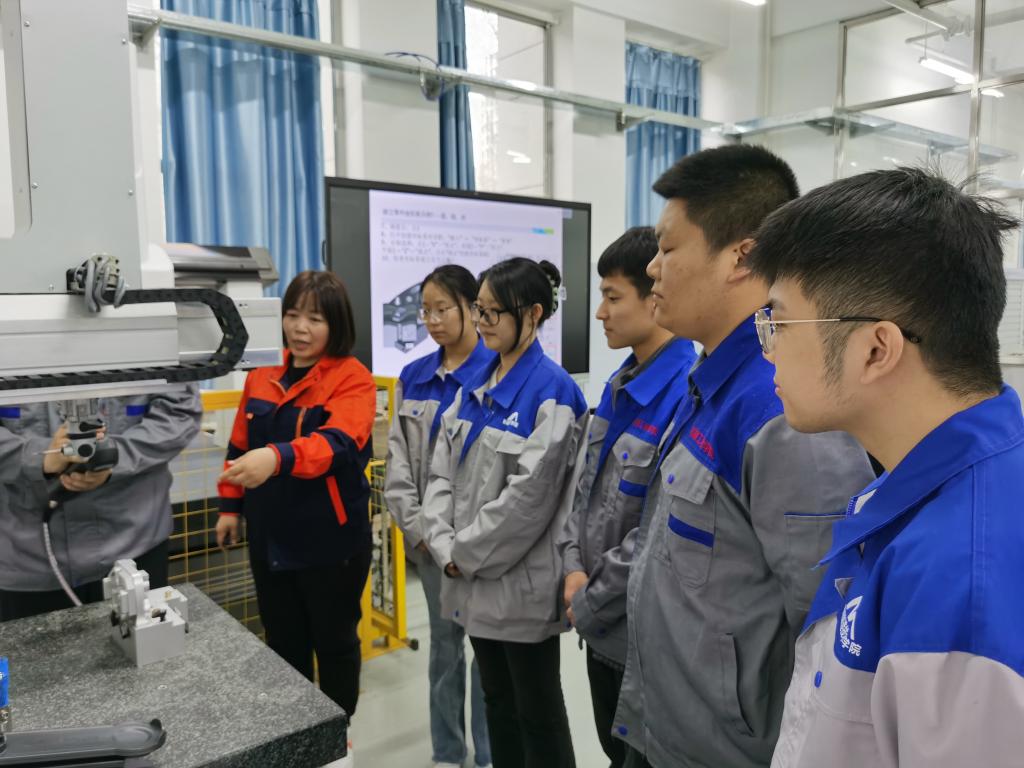 为提高学生实践操作能力,机械基础教研室教师利用业余时间以兴趣小组活动的方式指导学生实操,激发学习兴趣、促进学生全面发展,并使之成为一项常态化的教学工作。2023年4月27日,智能制造技术学院教师高维艳带领三坐标检测学生兴趣小组学生在工匠楼精密测量实训室,进行每周的小组活动,本次小组活动的检测项目是塑膜和机加零件检测,虽然本次课的内容难度较大,但兴趣小组的学生们积极踊跃学习,全程严格按照老师要求的步骤进行检测,又一次圆满的完成学习任务,提高了检测水平。通过学生兴趣小组活动的开展,不仅培养了学生的实操能力还发展了学生的个性特长,彰显了永利官网的办学特色。
