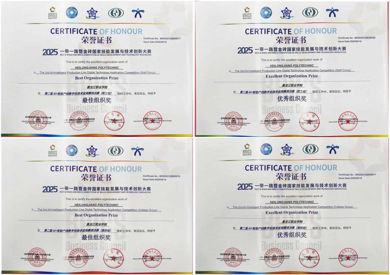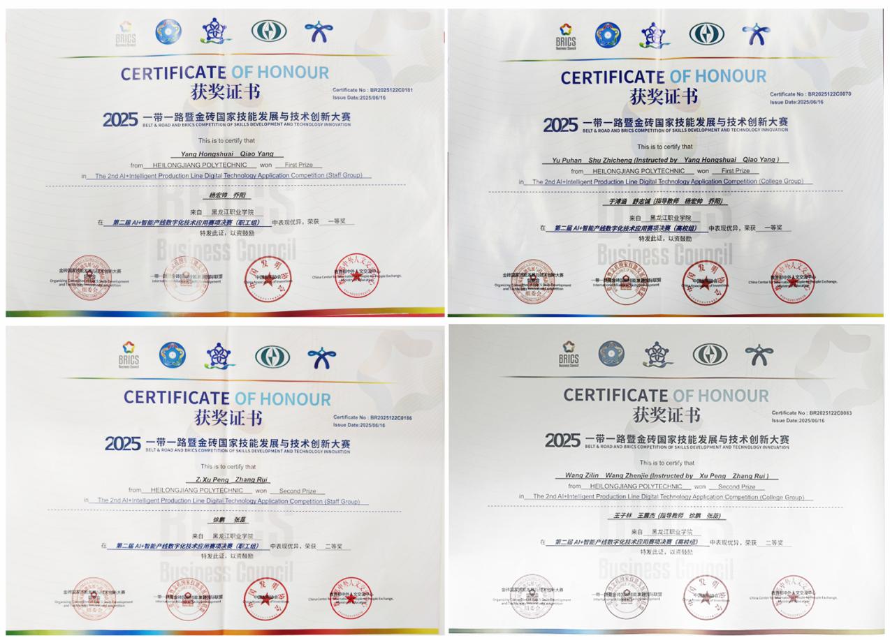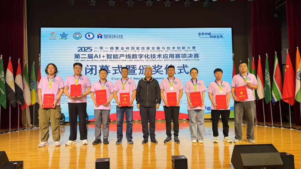 喜报:永利官网师生在2025“一带一路”暨金砖国家技能发展与技术创新大赛AI+智能产线数字化技术应用赛项首次同揽金银奖牌