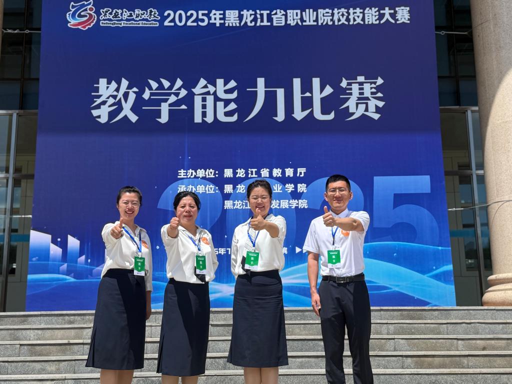 2025年黑龙江省职业院校技能大赛教学能力比赛现场决赛于7月13日至14日在永利集团88304官网举办,比赛分为中等职业教育组和高等职业教育组。分院孙璇、王景光、杨丽莉、王贤良四位教师组成的代表队参加了高等职业教育组现场决赛。