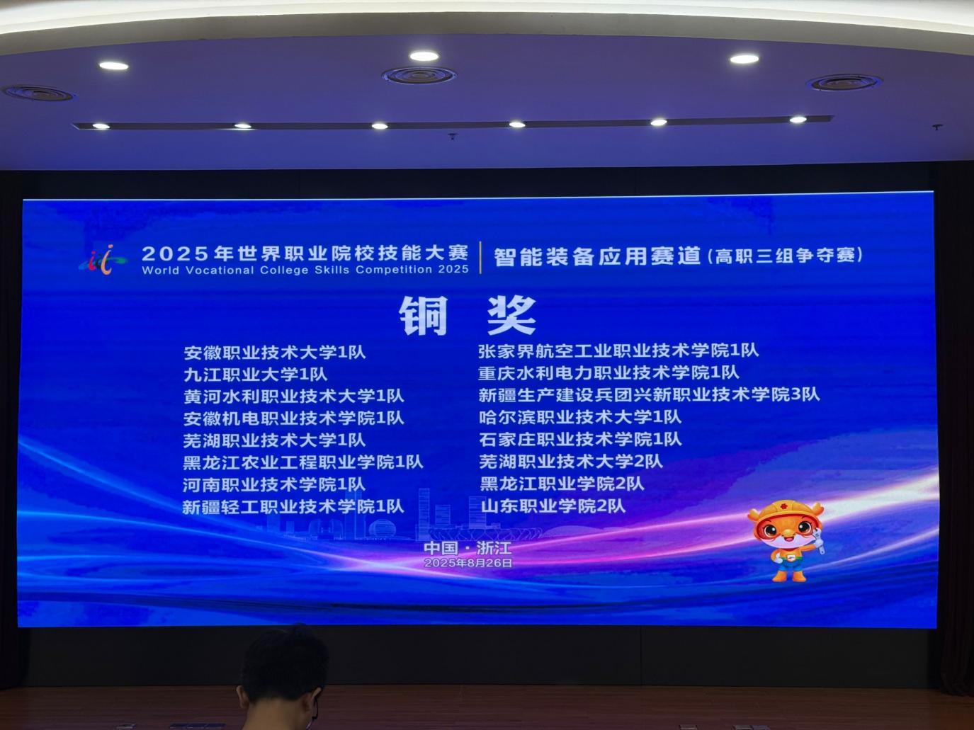 8月20日至26日,2025年世界职业院校技能大赛总决赛在浙江杭州开赛。永利集团88304官网智能制造技术学院学子捷报频传,在智能装备应用赛道斩获两项铜牌,尽显龙江职教风采。