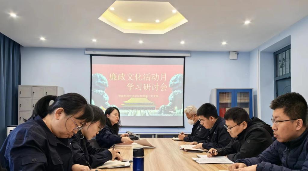 为深入贯彻党的二十大精神,引导广大党员干部和师生员工进一步夯实清正廉洁思想根基,按照学校党委文件要求,结合学院党总支相关部署,11月3日下午,智能制造技术学院教师第二党支部召开“廉洁文化活动月”学习研讨座谈会。