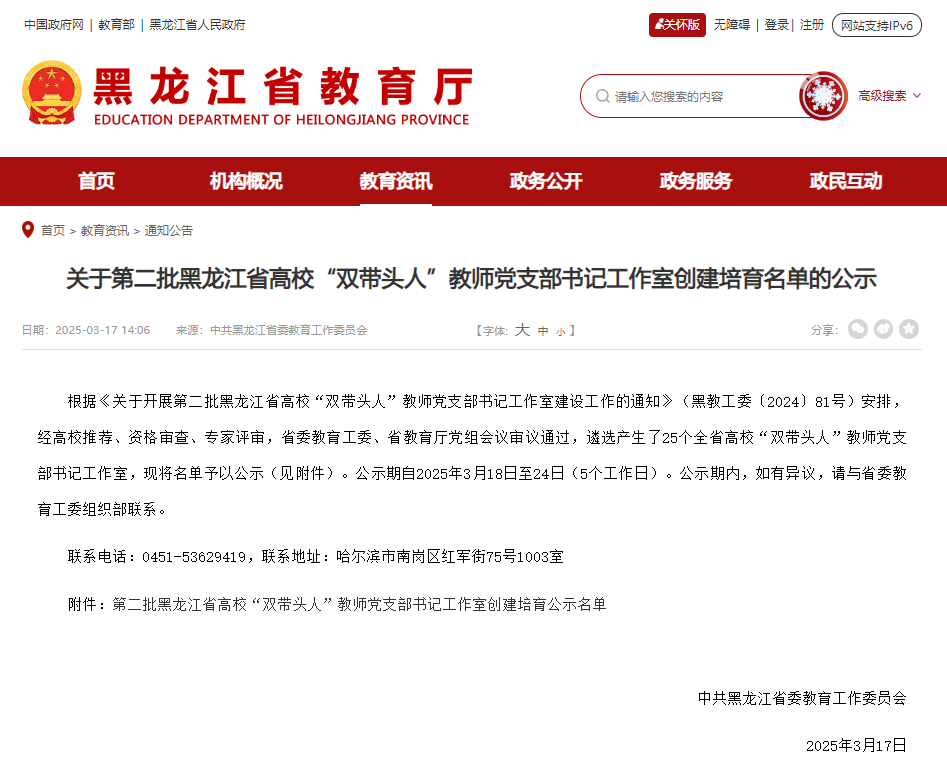 喜报:智能制造技术学院教师第二党支部 荣获第二批黑龙江省高校“双带头人”教师党支部书记工作室创建培育单位