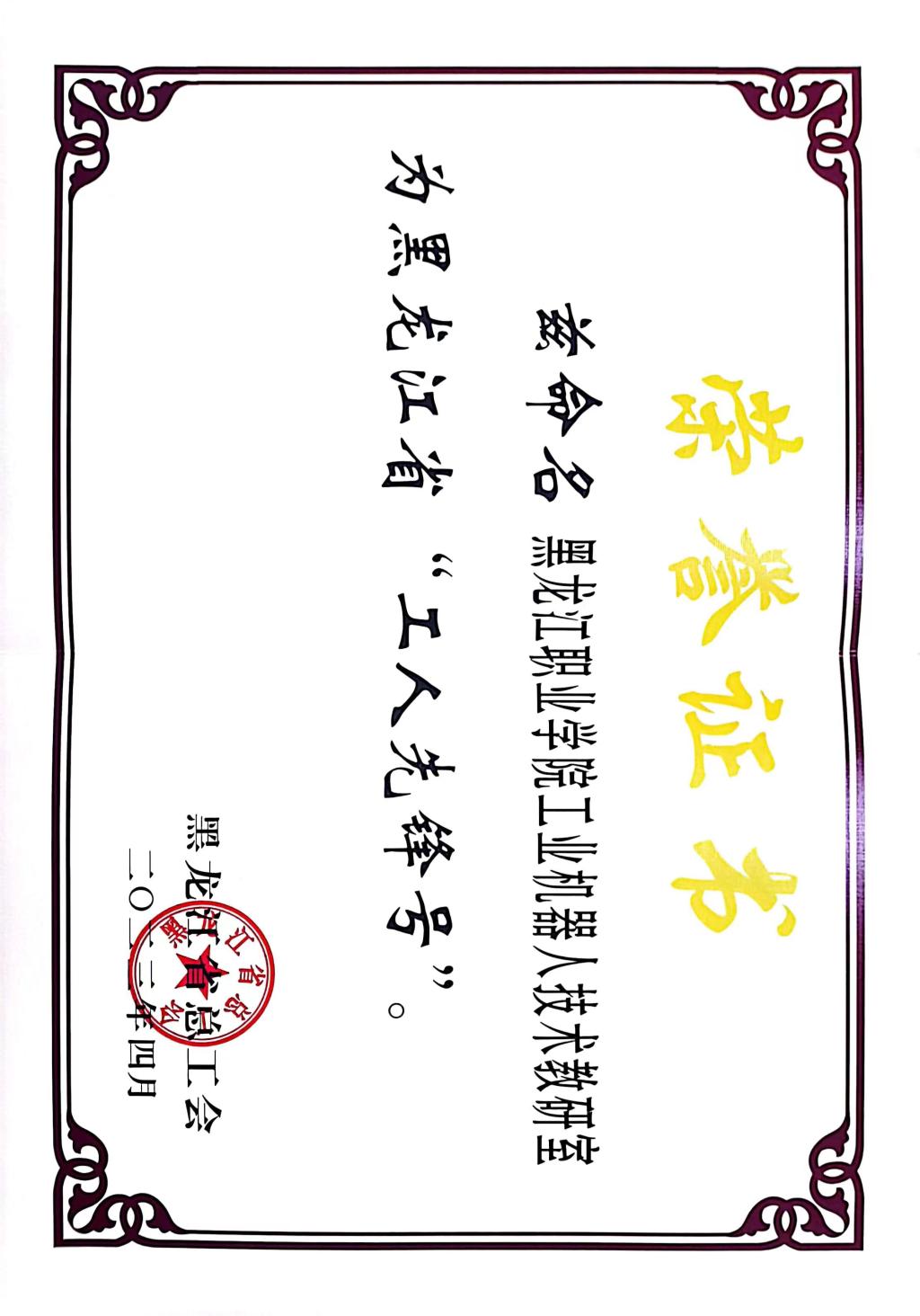 近日,在黑龙江省总工会组织开展的2023 年黑龙江省五一劳动奖和黑龙江省工人先锋号表彰中,授予永利官网智能制造技术学院工业机器人技术教研室黑龙江省工人先锋号荣誉称号,此次评选,学校党委高度重视,校工会全程给予指导。
