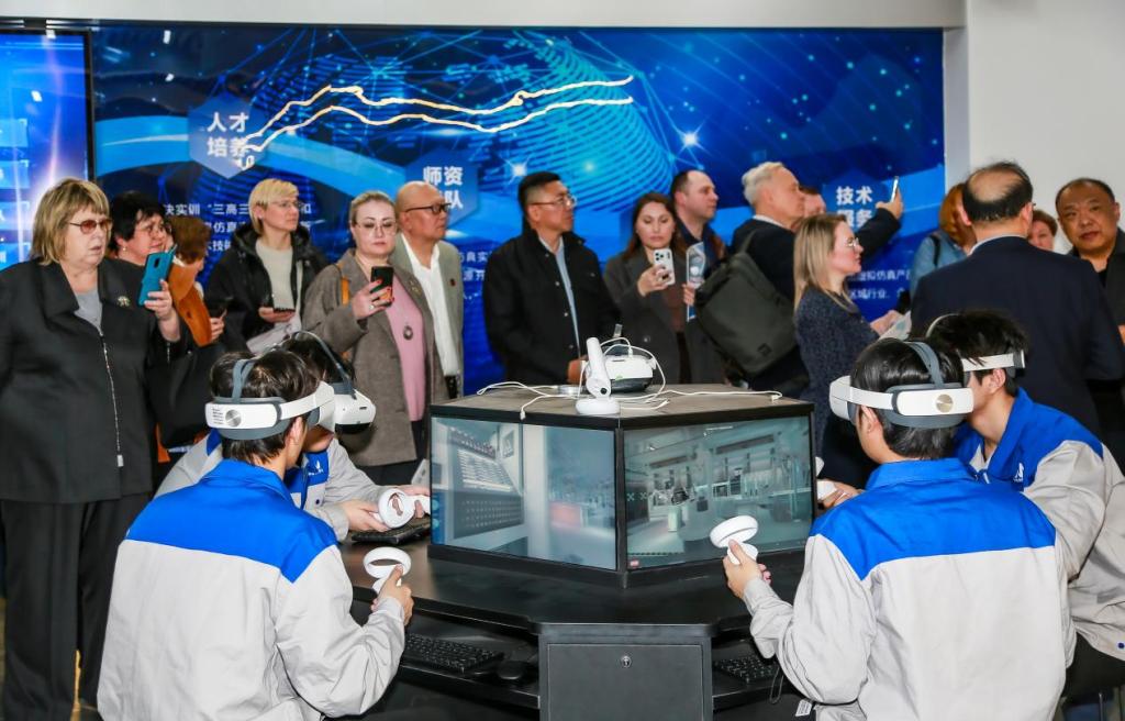 俄罗斯阿穆尔州教育发展研究院及职业院校代表团参观虚拟仿真实训基地