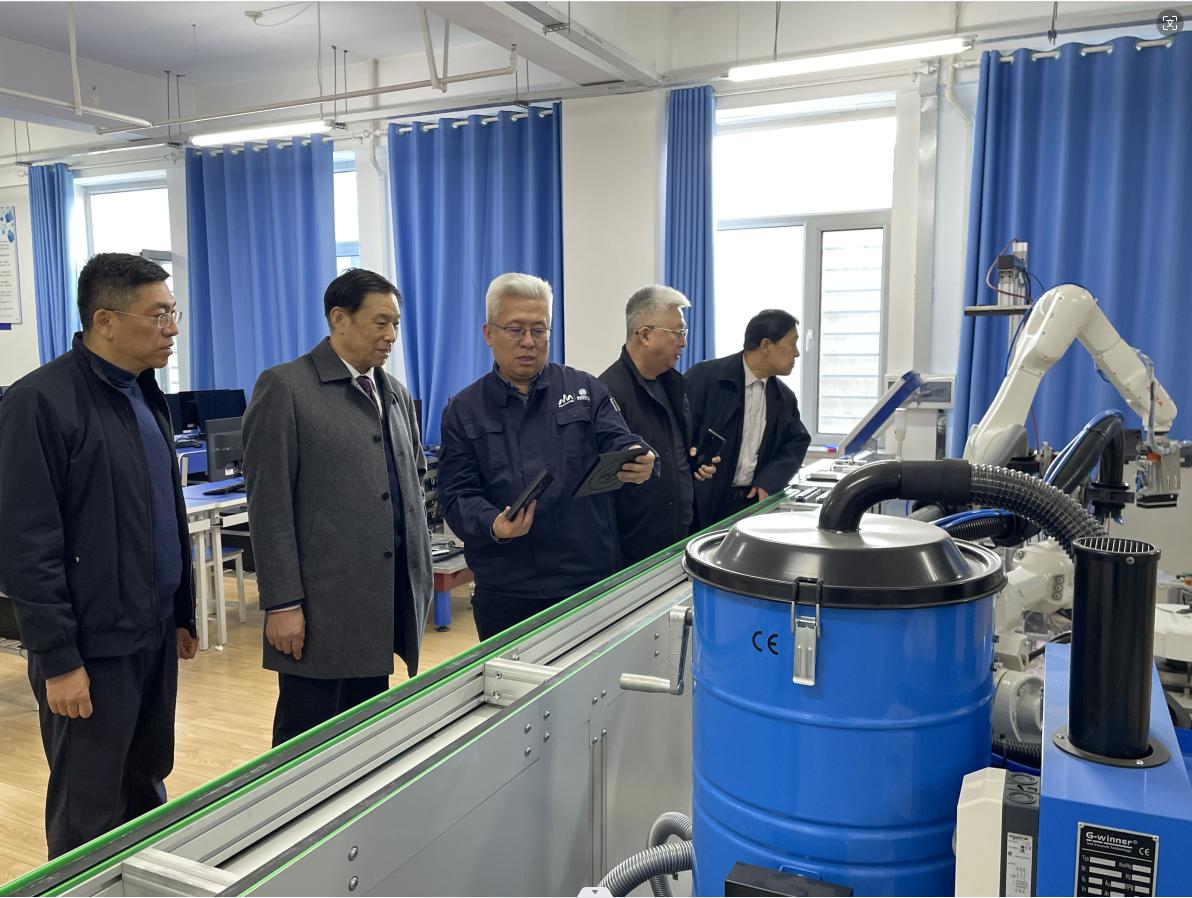 在调研过程中,马增良等领导参观了学院虚拟仿真实训基地、工业中心、增材制造实训室以及工业机器人训练中心等装备制造实训基地,对学院的硬件设施和实训教学环境有了直观而深入的了解。