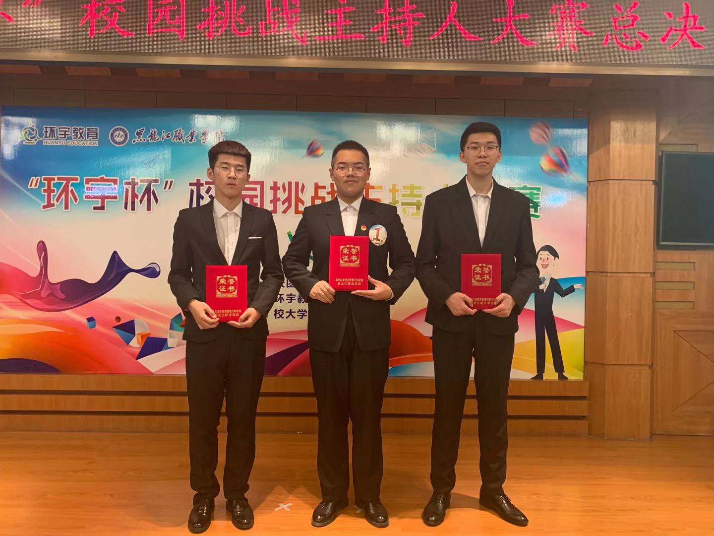 为响应校团委的号召2019年10月23日15:20,在清华楼经济报告厅开展了“环宇杯”校园挑战主持人决赛,经过初赛、复赛激烈的角逐我学院刘永亮同学荣获“银话筒”奖项,其他同学也都发挥出了自己的实力,取得自己满意的成绩。