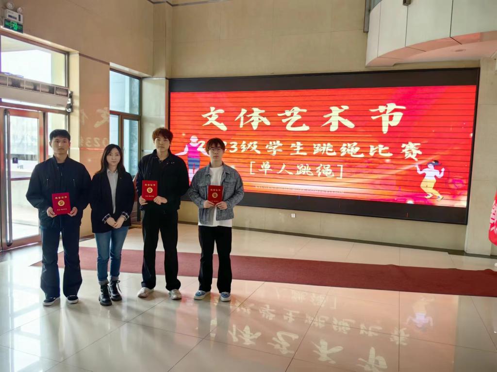 四月春色渐浓,伴随和煦春风,为丰富大学生的校园文化生活,活跃校园氛围,增强同学们的体育锻炼意识。永利集团88304官网校团委于2024年4月11日中午12:00时,在学校操场举办“文体艺术节”2023级学生跳绳比赛。