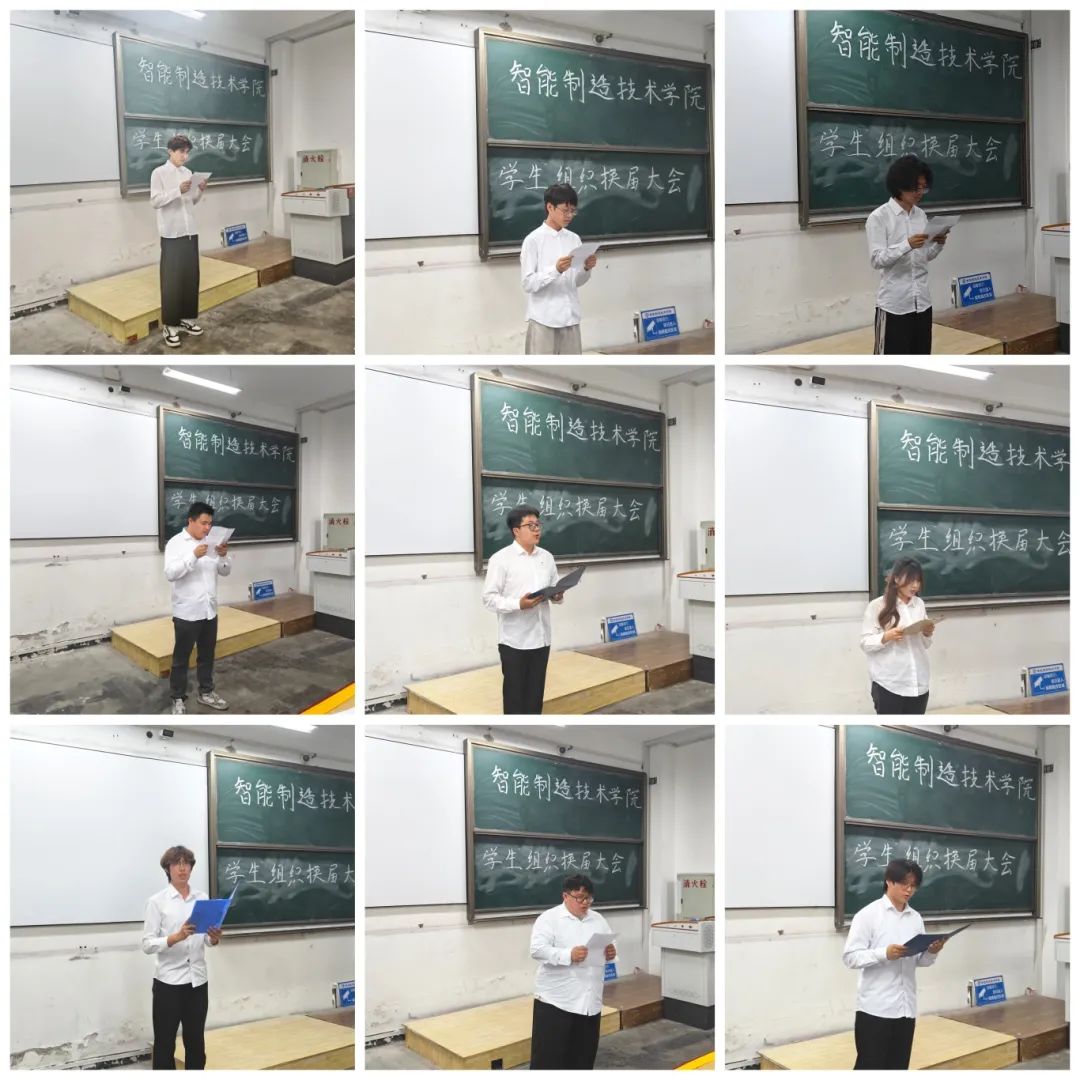 为持续优化我院学生干部队伍结构,充分彰显学生组织在思想引领、服务成长、权益维护中的重要职能,智能制造技术学院于2025年6月4日晚19:00分,在西J302教室召开学生组织换届竞选大会。学院党总支副书记李焕然、团总支书记姜玲老师、团总支副书记(教师)韩玉、辅导员代表邢磊莅临现场指导并参与会议全程。