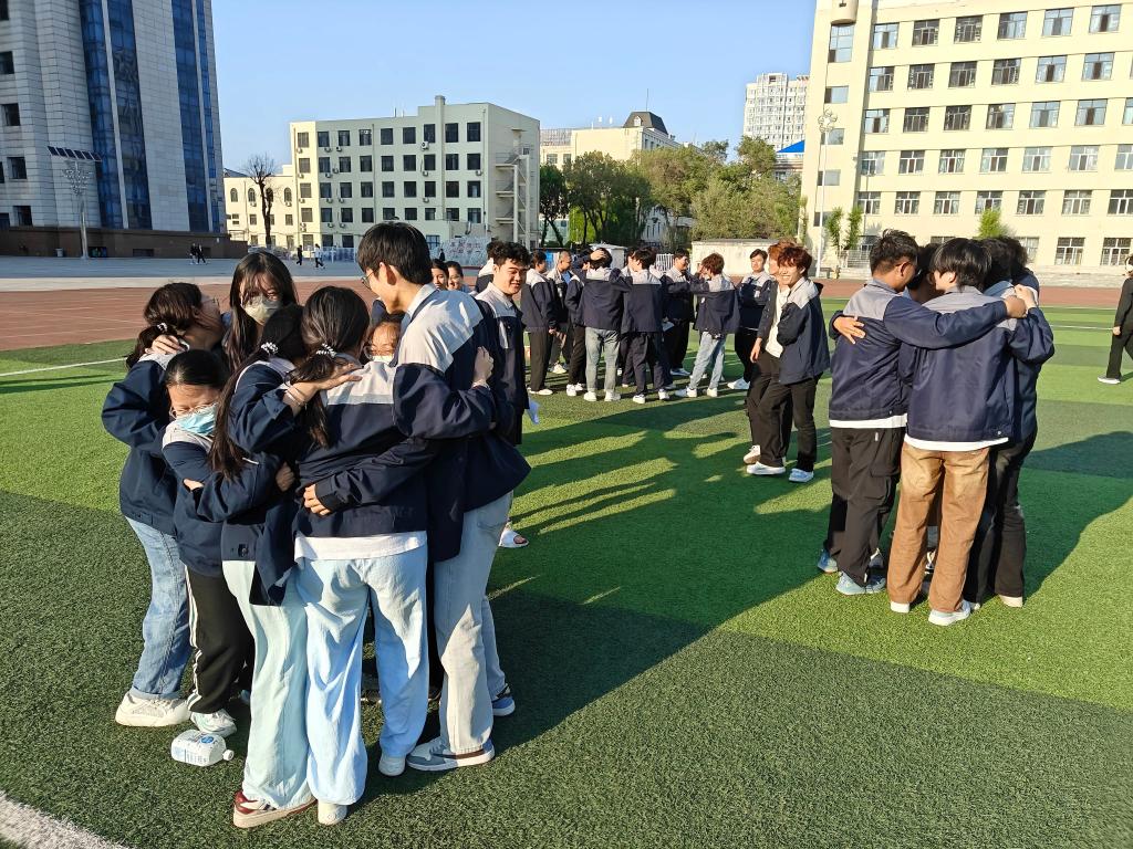 在“心有千千结”环节中,同学们通过记忆与协作,将错综复杂的“人结”恢复成完整的圆圈。游戏考验了团队的沟通与信任,也让大家深刻体会到:生活中的“结”只要齐心协力,总能迎刃而解。活动最后,同学们分享感悟,纷纷表示在游戏中收获了快乐与成长。