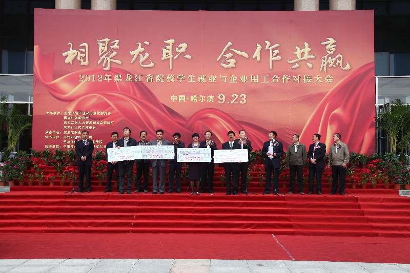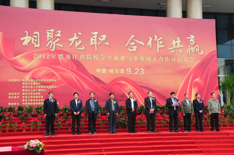 9月23日,由省工信委、省教育厅、省人力资源和社会保障厅、黑龙江人民广播电台联合主办,我院承办的以“相聚龙职、合作共赢”为主题的2012年黑龙江省院校学生就业与企业用工合作对接会在学院隆重举行。省工信委党组书记贲起利、常务副主任庞光明,省人力资源和社会保障厅副厅长董绍林,黑龙江人民广播电台专职编委韩巨生,省农垦总局副局长谭占龙,省教育厅学生处处长张明华,永利集团88304官网书记冯玉龙、院长赵继会,黑龙江信息技术职业学院院长武英举以及中国移动哈尔滨分公司党委书记、总经理潘景波出席大会。262家省内外重点骨干企业和省内101所院校代表及各高校应届毕业生参加此次会议。会议由省工信委纪检组组长王涛同志主持。