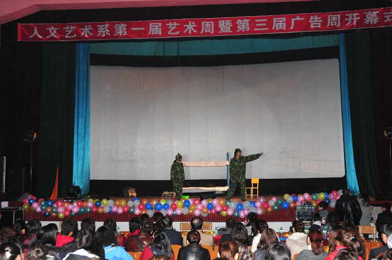 以“艺术侵袭 袭卷你的世界”为主题的学院人文艺术系第一届艺术周暨第三届广告周活动于2010年10月20日在学院俱乐部举行。党委书记冯玉龙、副院长刘公远、副书记张玉山、副院长郑福贵出席了开幕式,并共同为活动剪彩,这标志着人文艺术系首届艺术周隆重拉开序幕。