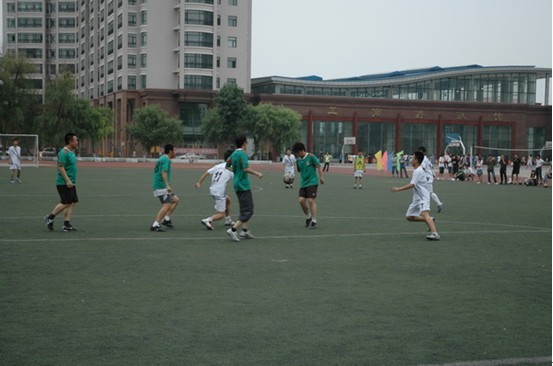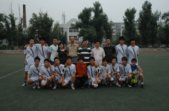 6月12日下午 5点,学院迎“七一”展风采师生足球赛在足球场开赛。学院党委副书记张玉山同志观看比赛,并分别同学生足球队、教工足球队合影留念。