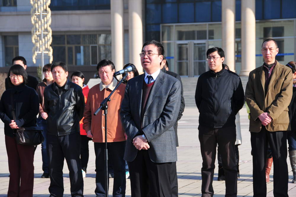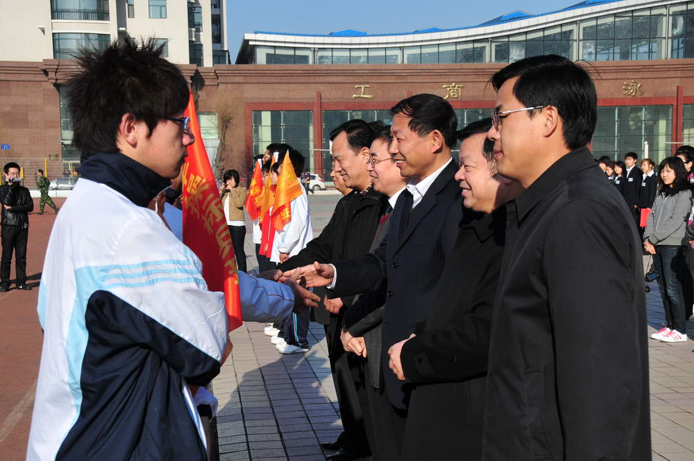 黑龙江工商职业技术学院党委书记冯玉龙同志代表学院党委作了讲话。他首先对张明华处长的到来表示感谢,并向获得“军操标兵”称号的班级表示祝贺。他指出,随着教育体制改革的推进,高职院校面临着巨大挑战,要在众多高职院校中脱颖而出,很重要的一点就是要适应经济社会发展的需要,培养出高素质技能型人才;适应人才市场需求的变化,培养出用人单位需要的人才。针对新时期对人才培养的新要求,学院党委提出了“六个坚定不移”的发展战略、“高起点、高标准、高效率”的管理理念和“争上游,创一流,站排头”的工作要求,积极响应省教育厅的号召,高度重视学生素质提高工作,特别是军事体育工作。学院在我省高校中独树一帜,多年来年坚持开展早军操活动,将早军操活动成为学生身体素质提高、国防意识增强、意识品格锤炼、综合素质培养的重要载体,成为学院学生管理和素质教育的一大特色和亮点。冯玉龙同志对会操表演非常满意,学生阵容整齐、口号嘹亮、气势宏伟。同时,冯玉龙同志代表学院党委要求学生刻苦努力、砥志砺炼、学会做人、学会做事、学会成功,成为合格的社会主义建设者。