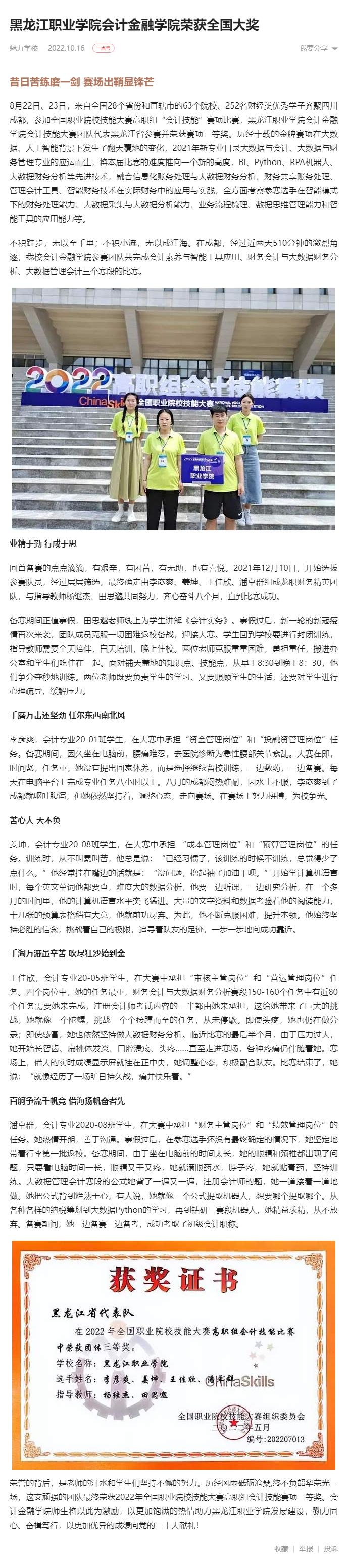 【一点资讯】永利集团88304官网会计金融学院荣获全国大奖