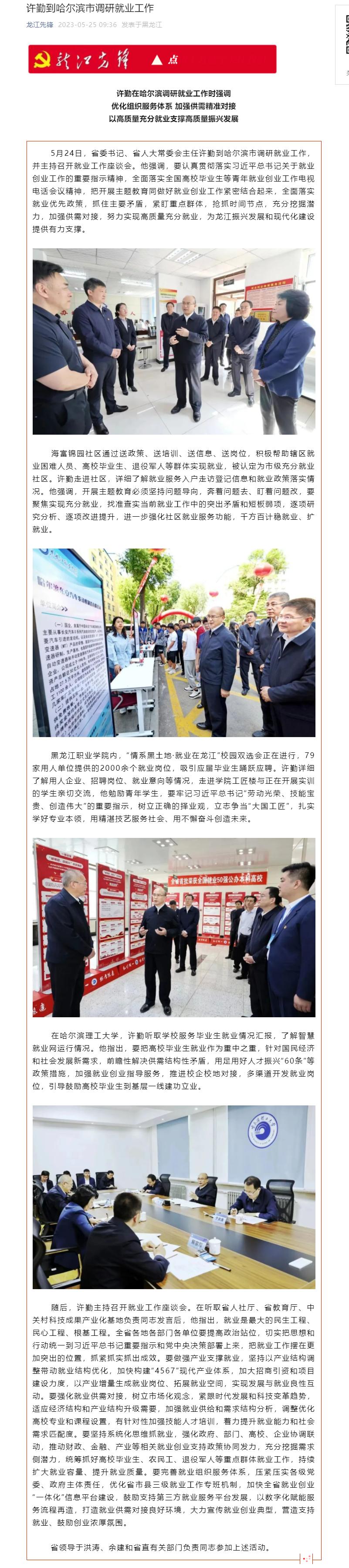 【黑龙江政务】许勤到哈尔滨市调研就业工作