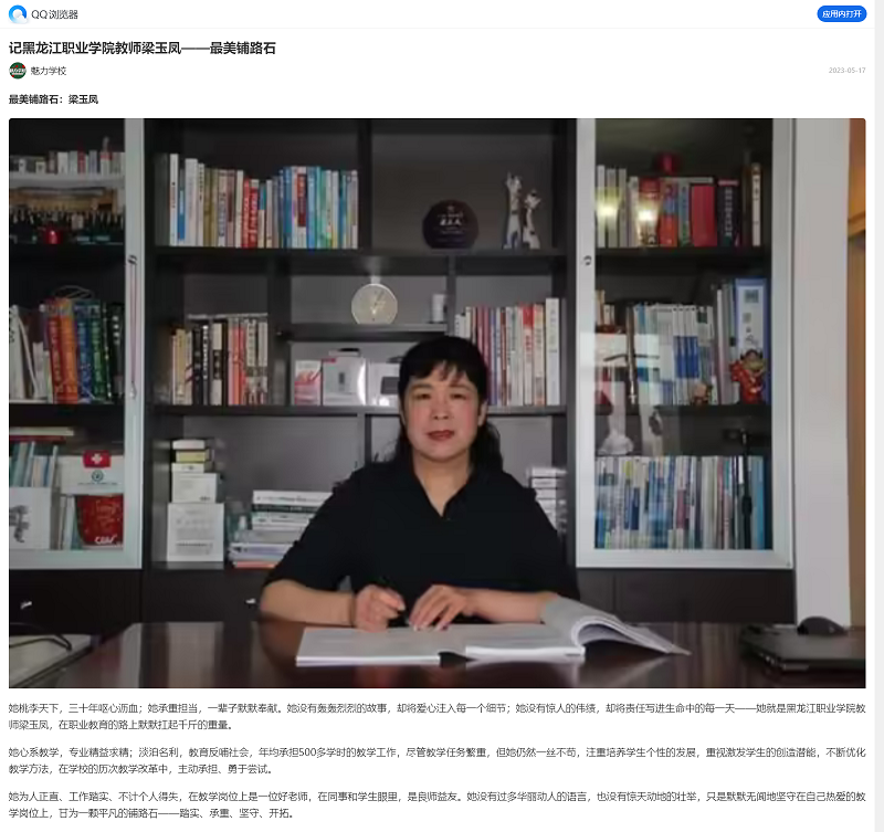 【QQ浏览器】记永利集团88304官网教师梁玉凤——最㺯铺路石