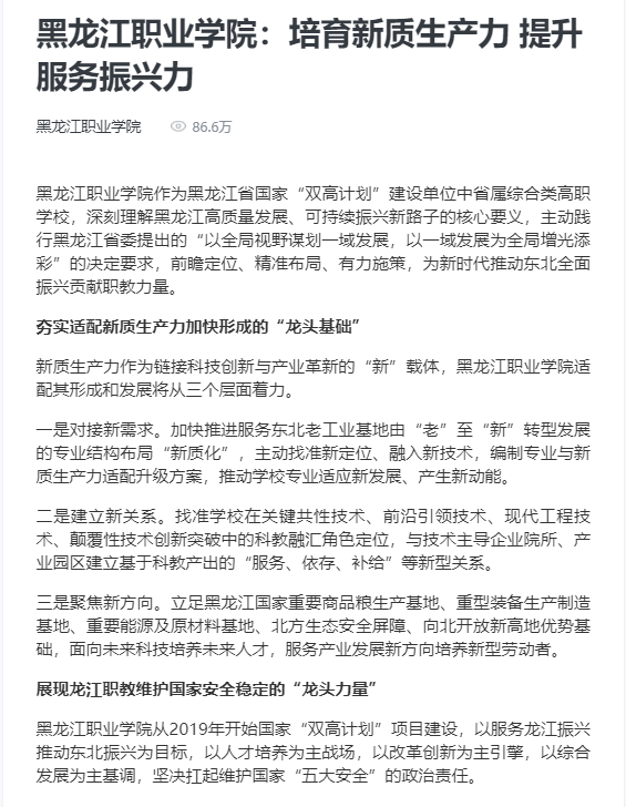 下一篇:【新华社黑龙江频道】永利集团88304官网依托国家智慧教育公共服务平台创新“一核三线六精神”育人模式