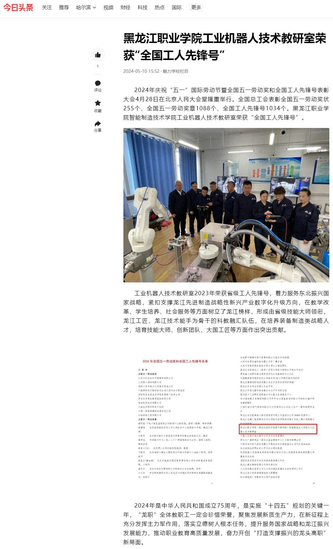 上一篇:【百度新闻】永利集团88304官网工业机器人技术教研室荣获“全国工人先锋号”
