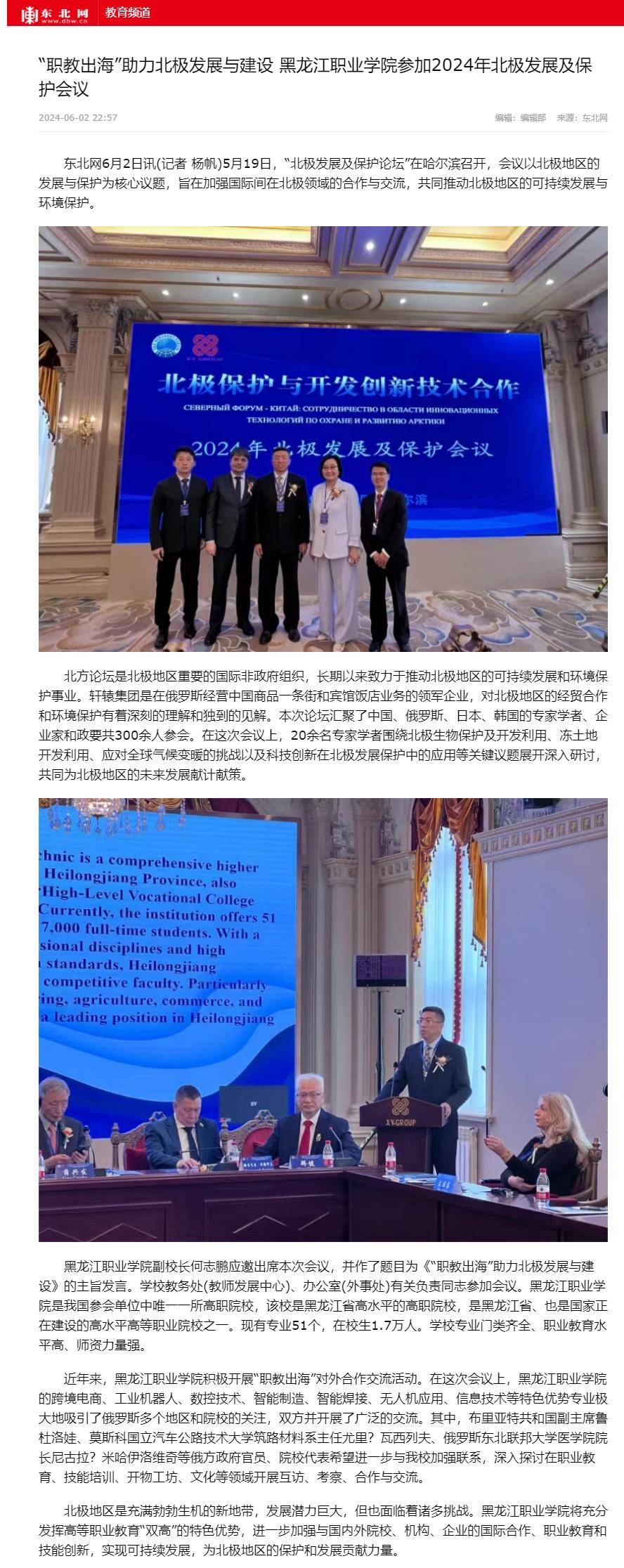 【东北网】“职教出海”助力北极发展与建设 永利集团88304官网参加2024年北极发展及保护会议