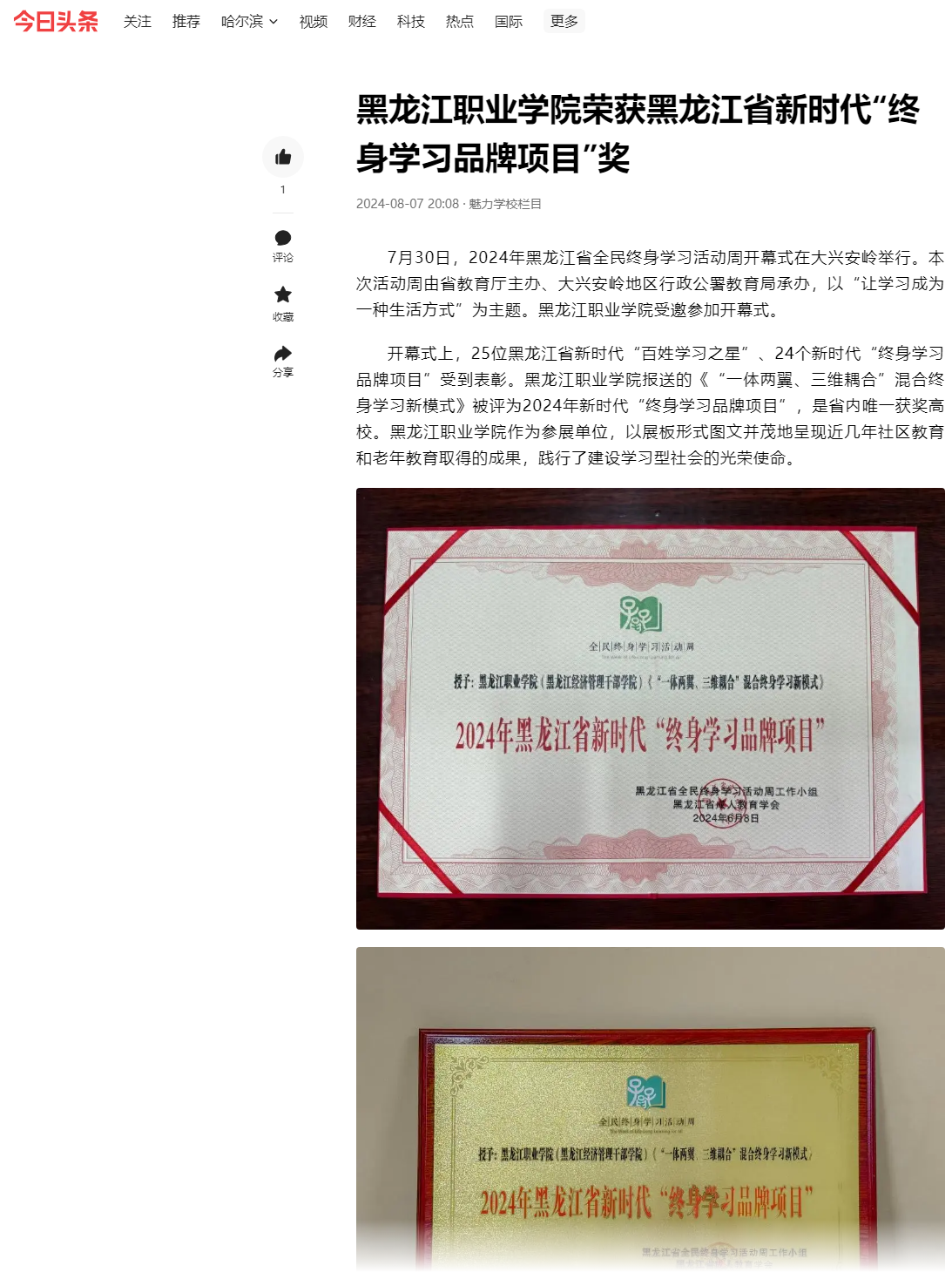 下一篇:【UC浏览器】永利集团88304官网荣获黑龙江省新时代“终身学习品牌项目”奖