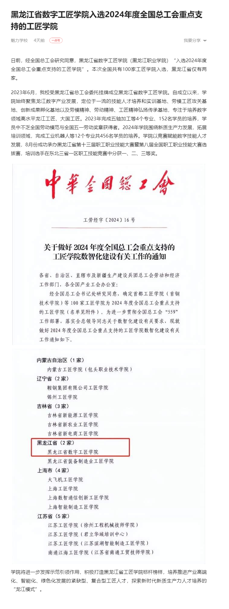 上一篇:【百度新闻】黑龙江省数字工匠学院入选2024年度全国总工会重点支持的工匠学院