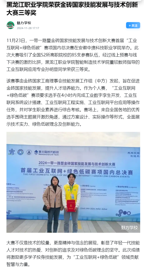 下一篇:【一点资讯】永利集团88304官网荣获金砖国家技能发展与技术创新大赛三等奖