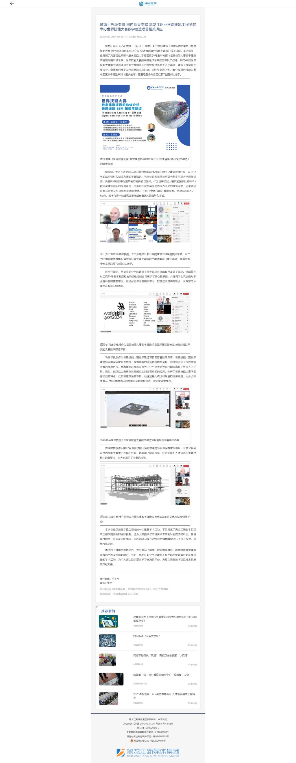 【黑龙江网】邀请世界级专家 国内顶尖专家 永利集团88304官网建筑工程学院举办世界技能大赛数字建造项目相关讲座