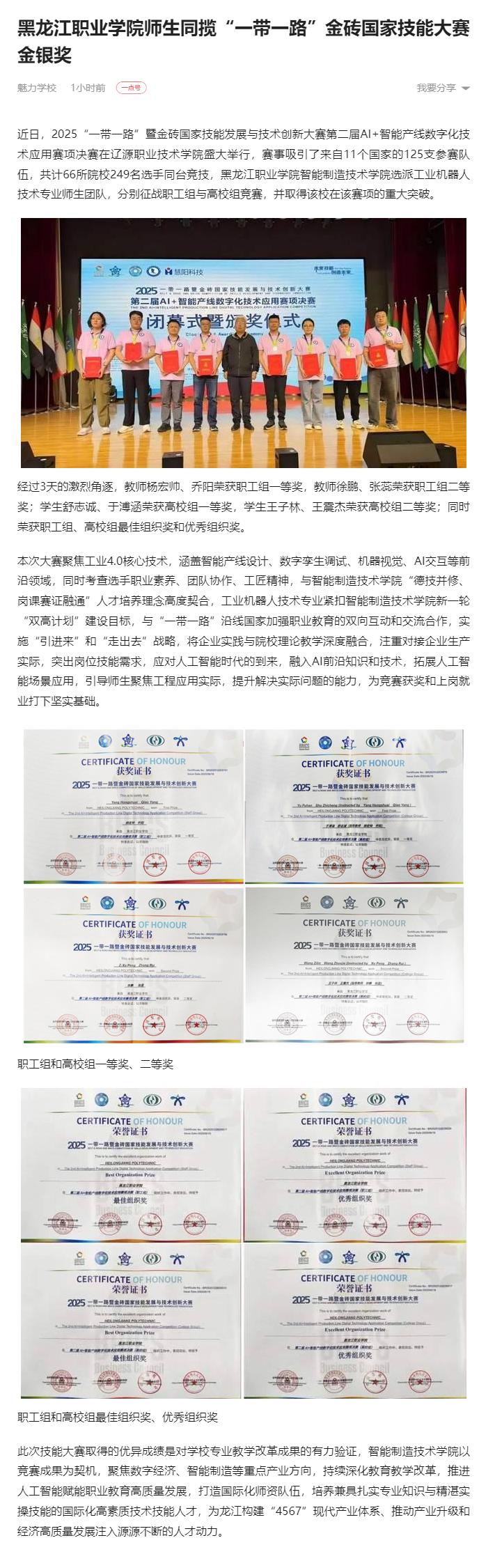 上一篇:【百度新闻】永利集团88304官网师生同揽“一带一路”金砖国家技能大赛金银奖
