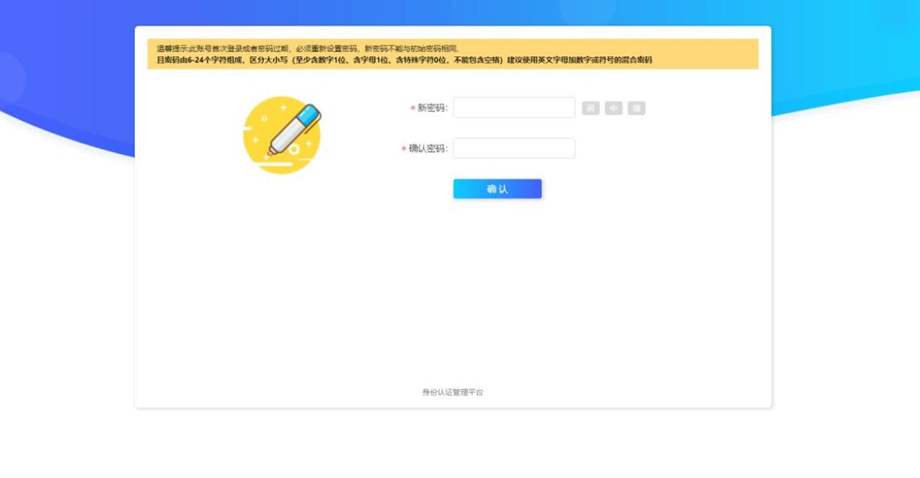 (2)输入账号、密码点击登录,首次登录之后需要修改密码,新密码的设置要符合系统提示的安全规则。